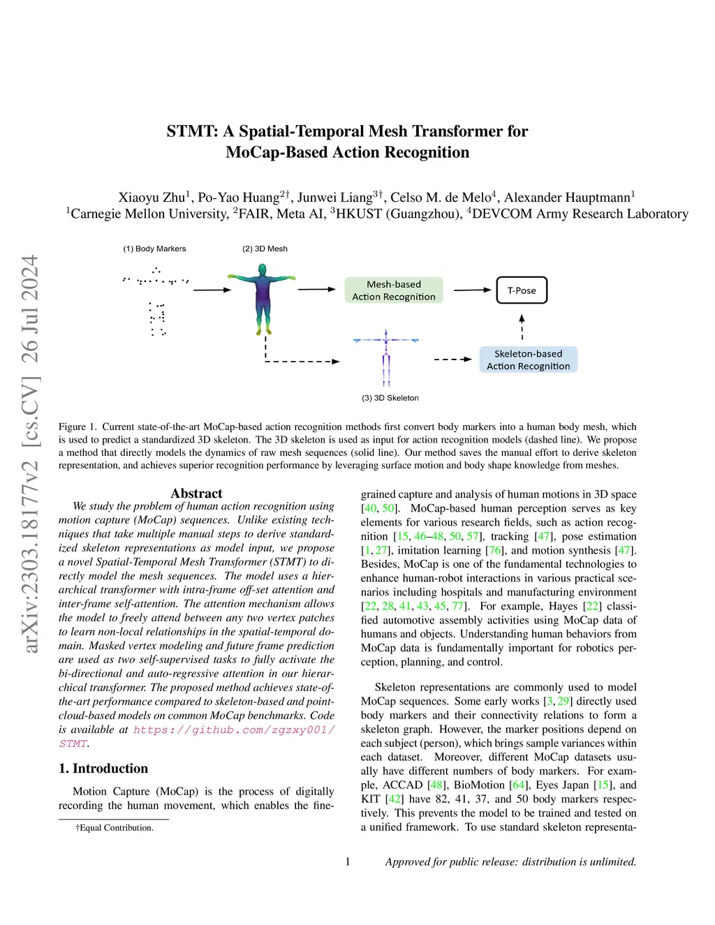 STMT: A Spatial-Temporal Mesh Transformer for MoCap-Based Action