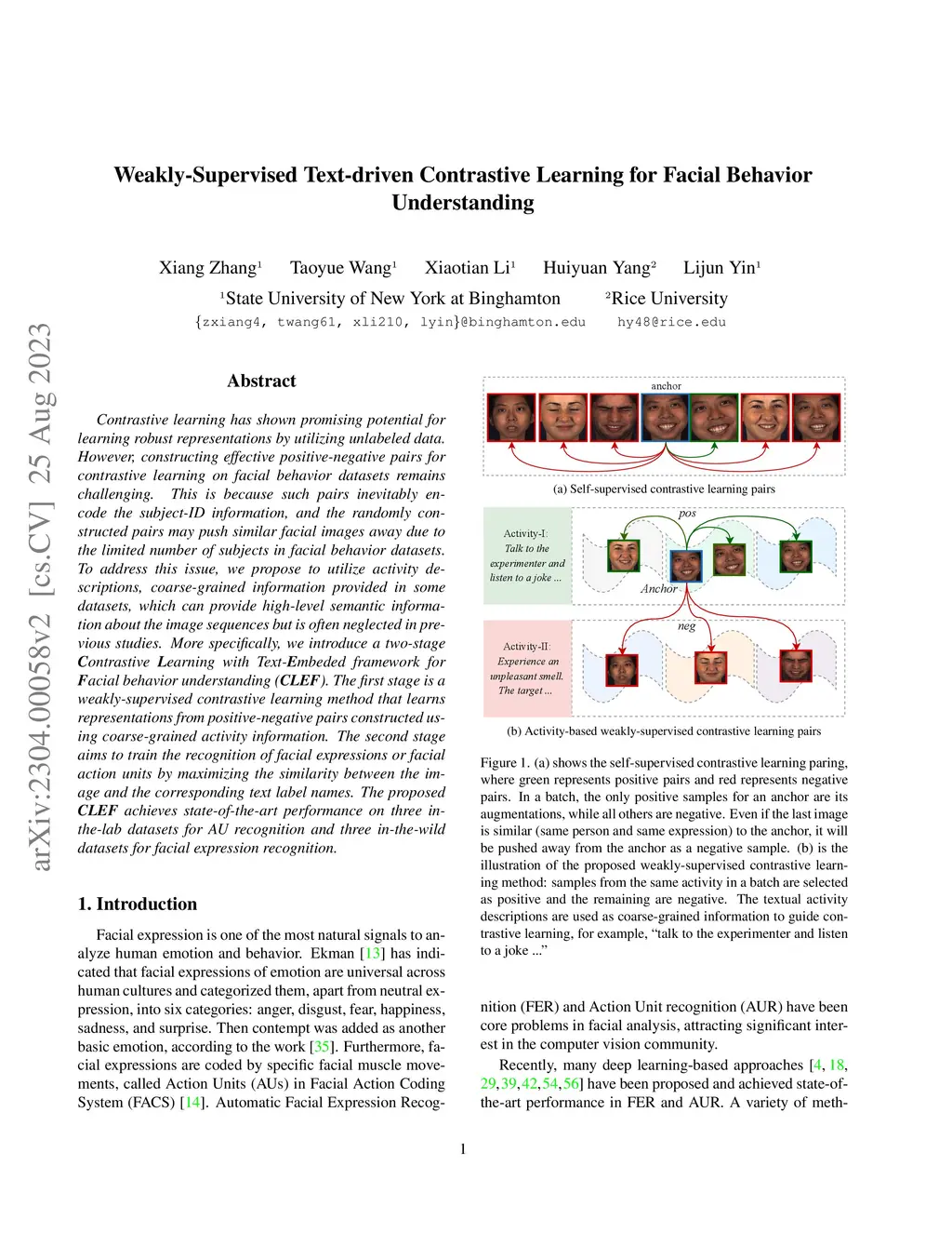 Weakly-Supervised Text-driven Contrastive Learning for Facial Behavior Understanding