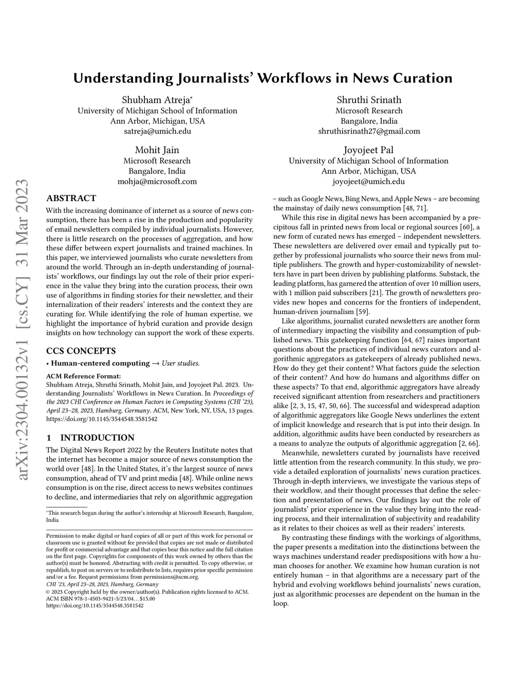With the increasing dominance of the internet as a source of news consumption, there has been a rise in the production and popularity of email newsletters compiled by individual journalists. However, there is little research on the processes of aggregation, and how these differ between expert journalists and trained machines. In this paper, we interviewed journalists who curate newsletters from around the world. Through an in-depth understanding of journalists' workflows, our findings lay out the role of their prior experience in the value they bring into the curation process, their use of algorithms in finding stories for their newsletter, and their internalization of their readers' interests and the context they are curating for. While identifying the role of human expertise, we highlight the importance of hybrid curation and provide design insights on how technology can support the work of these experts.