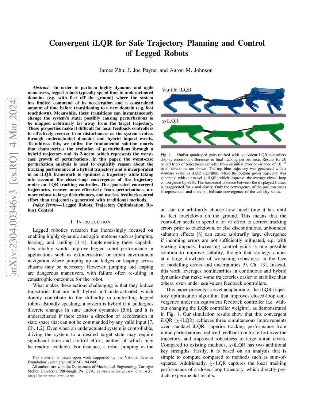 Convergent iLQR for Safe Trajectory Planning and Control of Legged
