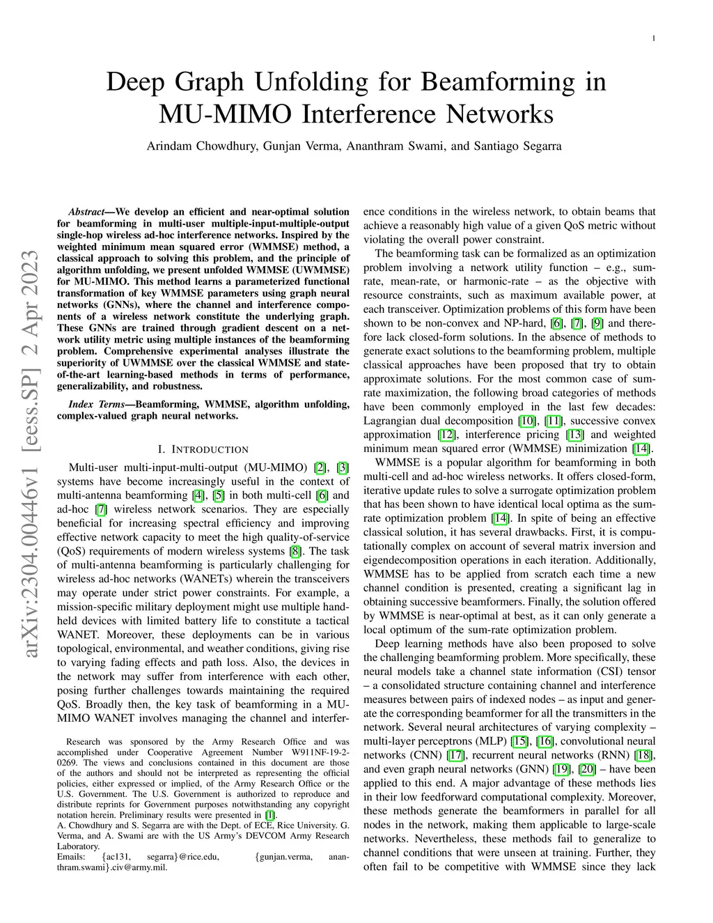 We develop an efficient and near-optimal solution for beamforming in multi-user multiple-input-multiple-output single-hop wireless ad-hoc interference networks. Inspired by the weighted minimum mean squared error (WMMSE) method, a classical approach to solving this problem, and the principle of algorithm unfolding, we present unfolded WMMSE (UWMMSE) for MU-MIMO. This method learns a parameterized functional transformation of key WMMSE parameters using graph neural networks (GNNs), where the channel and interference components of a wireless network constitute the underlying graph. These GNNs are trained through gradient descent on a network utility metric using multiple instances of the beamforming problem. Comprehensive experimental analyses illustrate the superiority of UWMMSE over the classical WMMSE and state-of-the-art learning-based methods in terms of performance, generalizability, and robustness.