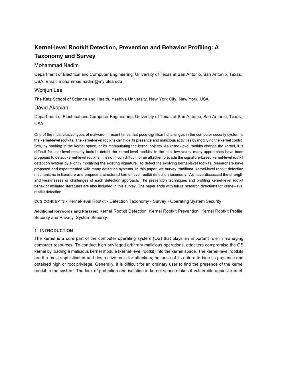 Kernel-level Rootkit Detection, Prevention and Behavior Profiling: A