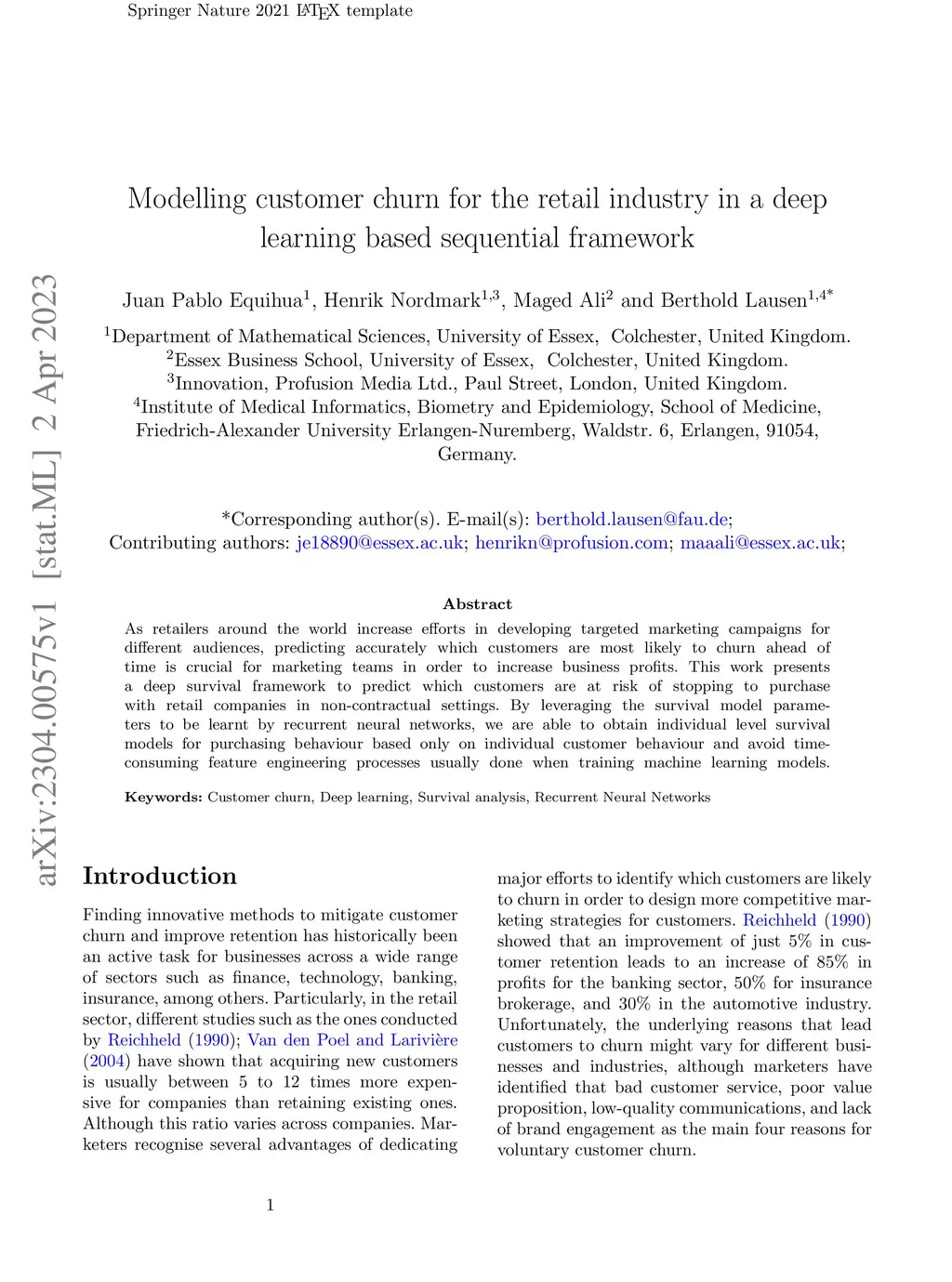 Modelling customer churn for the retail industry in a deep learning