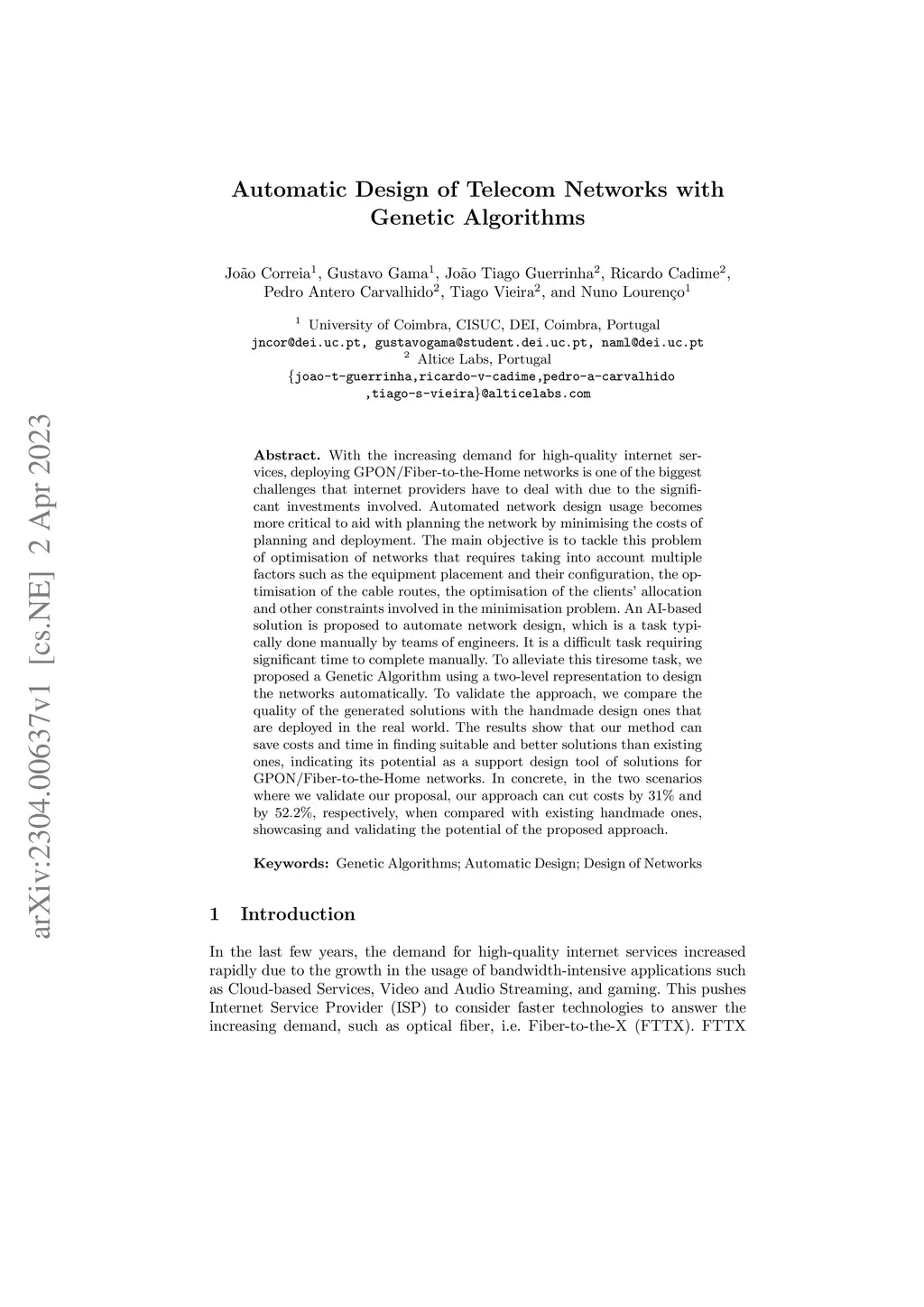 Automatic Design of Telecom Networks with Genetic Algorithms