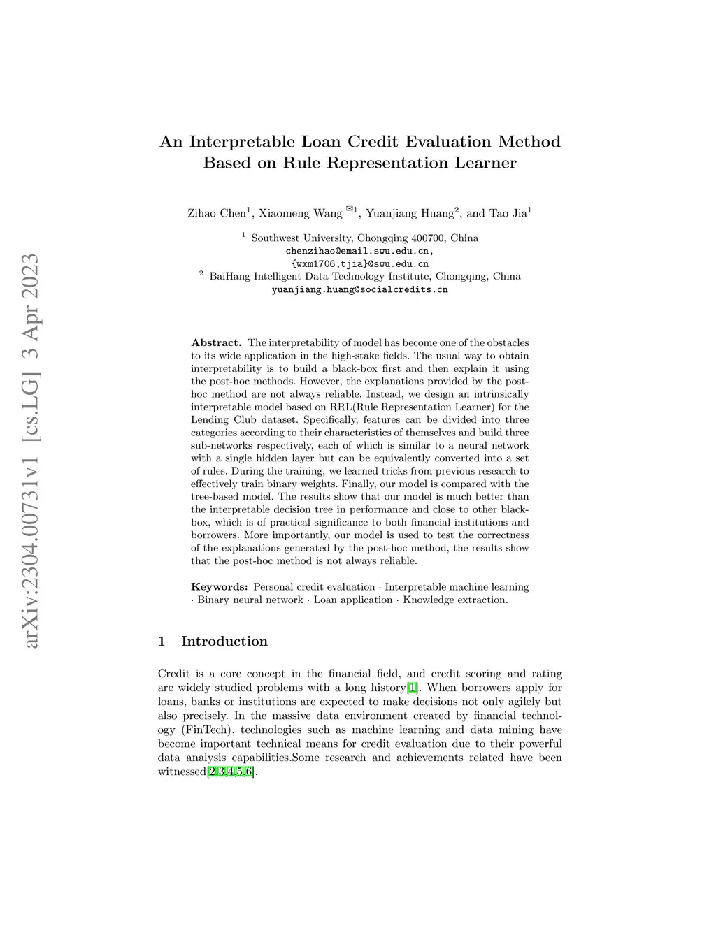 The interpretability of model has become one of the obstacles to its wide application in the high-stake fields. The usual way to obtain interpretability is to build a black-box first and then explain it using the post-hoc methods. However, the explanations provided by the post-hoc method are not always reliable. Instead, we design an intrinsically interpretable model based on RRL(Rule Representation Learner) for the Lending Club dataset. Specifically, features can be divided into three categories according to their characteristics of themselves and build three sub-networks respectively, each of which is similar to a neural network with a single hidden layer but can be equivalently converted into a set of rules. During the training, we learned tricks from previous research to effectively train binary weights. Finally, our model is compared with the tree-based model. The results show that our model is much better than the interpretable decision tree in performance and close to other black-box, which is of practical significance to both financial institutions and borrowers. More importantly, our model is used to test the correctness of the explanations generated by the post-hoc method, the results show that the post-hoc method is not always reliable.
