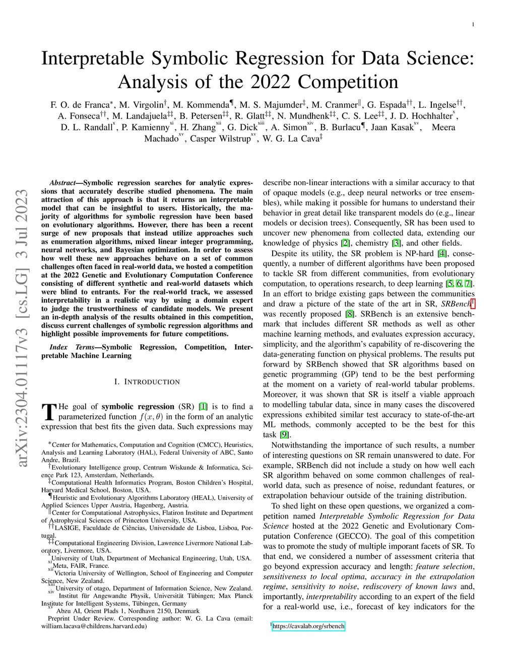 Interpretable Symbolic Regression for Data Science: Analysis of the 2022