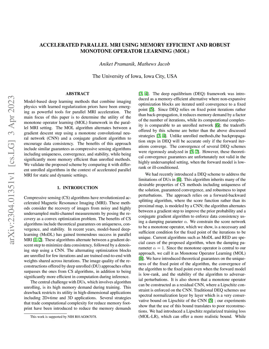 Accelerated parallel MRI using memory efficient and robust monotone