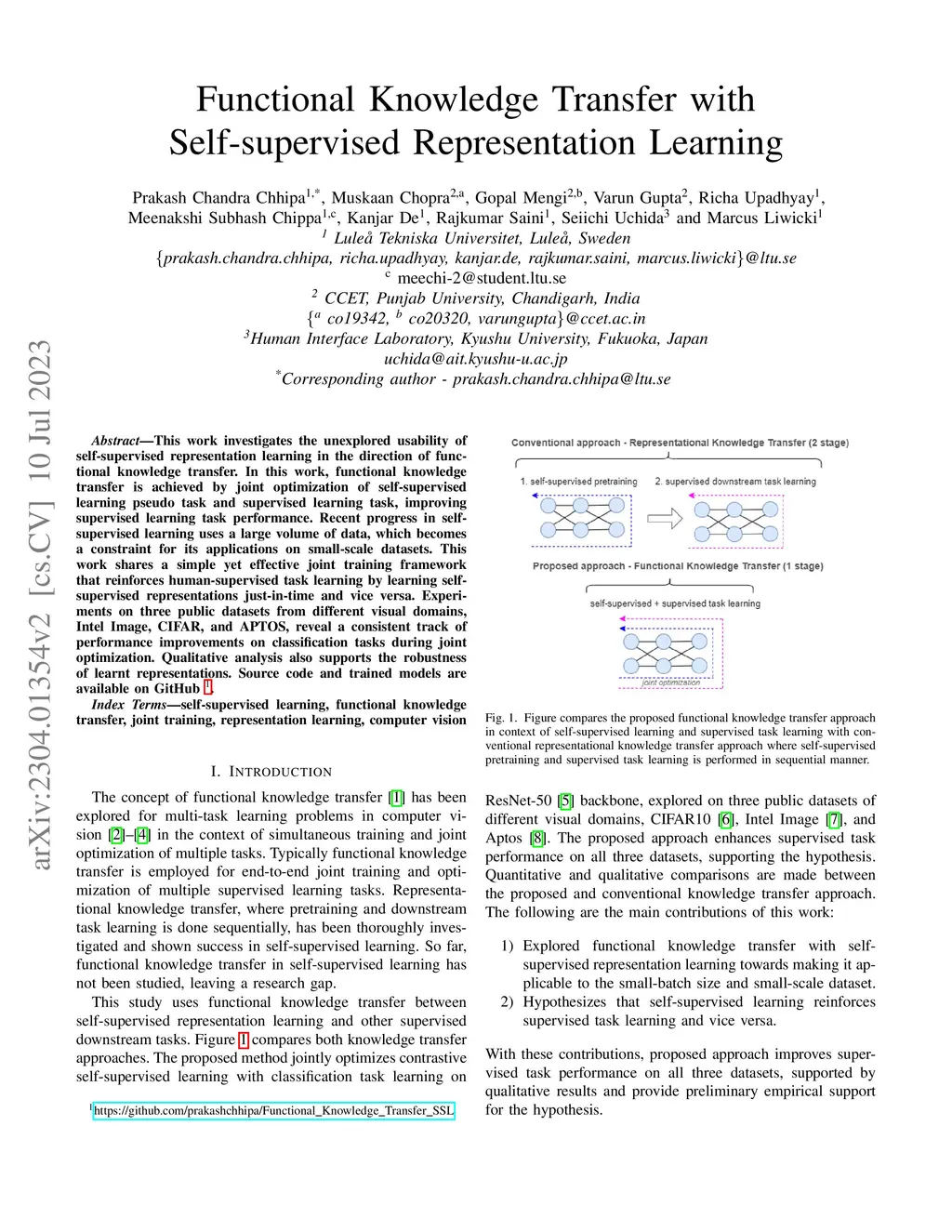 Functional Knowledge Transfer with Self-supervised Representation