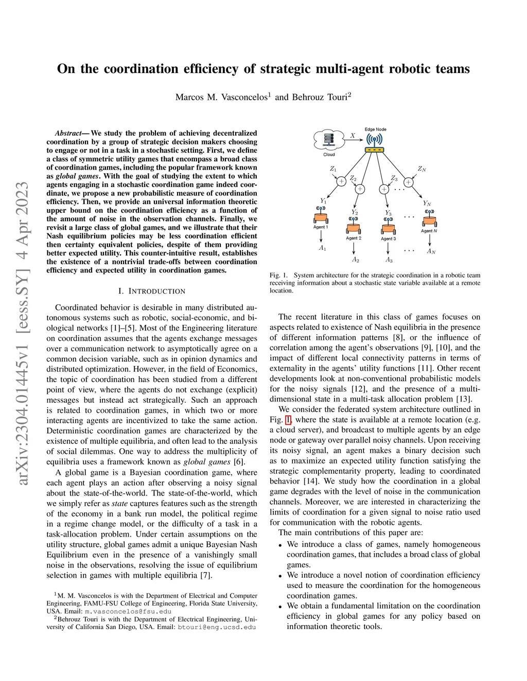On the coordination efficiency of strategic multi-agent robotic teams