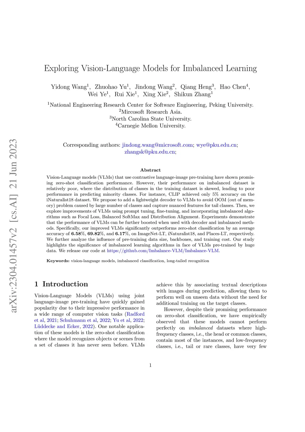 Exploring Vision-Language Models for Imbalanced Learning