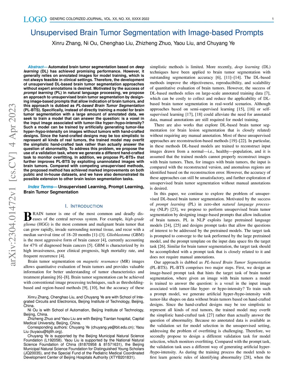 Unsupervised Brain Tumor Segmentation with Image-based Prompts