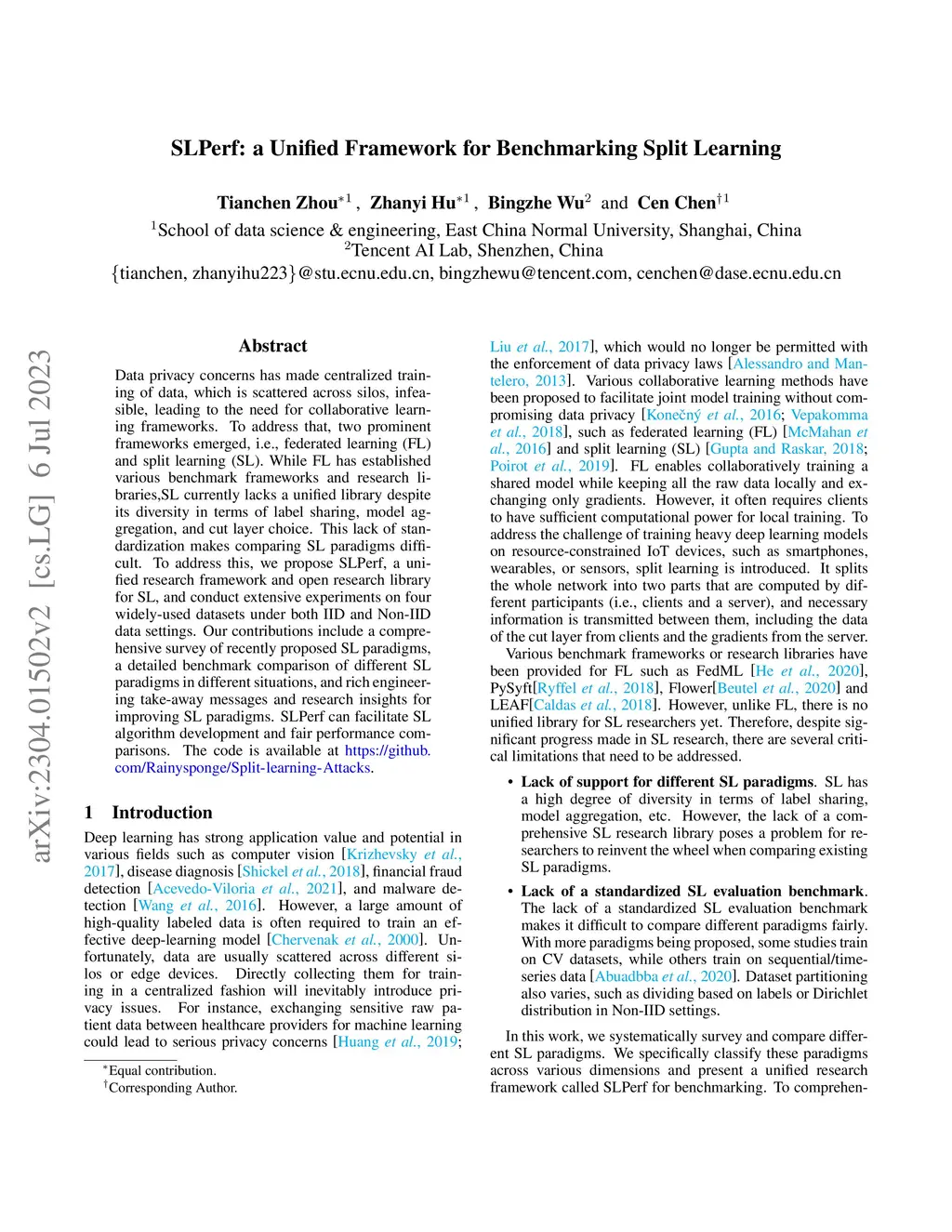 SLPerf: a Unified Framework for Benchmarking Split Learning
