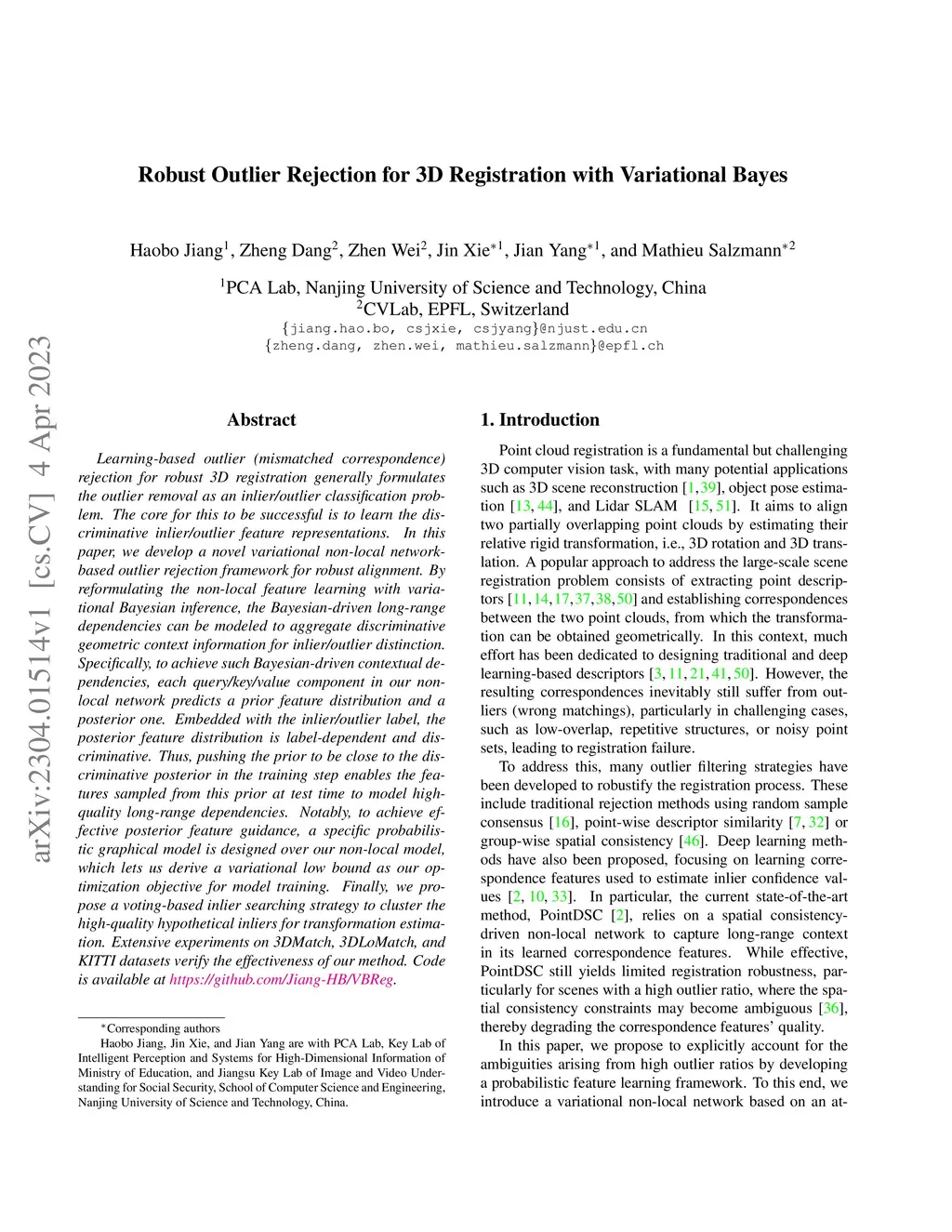 Robust Outlier Rejection for 3D Registration with Variational Bayes