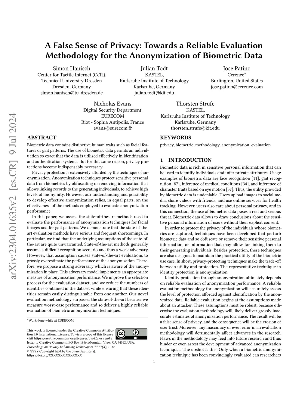 the Anonymization of Biometric Data