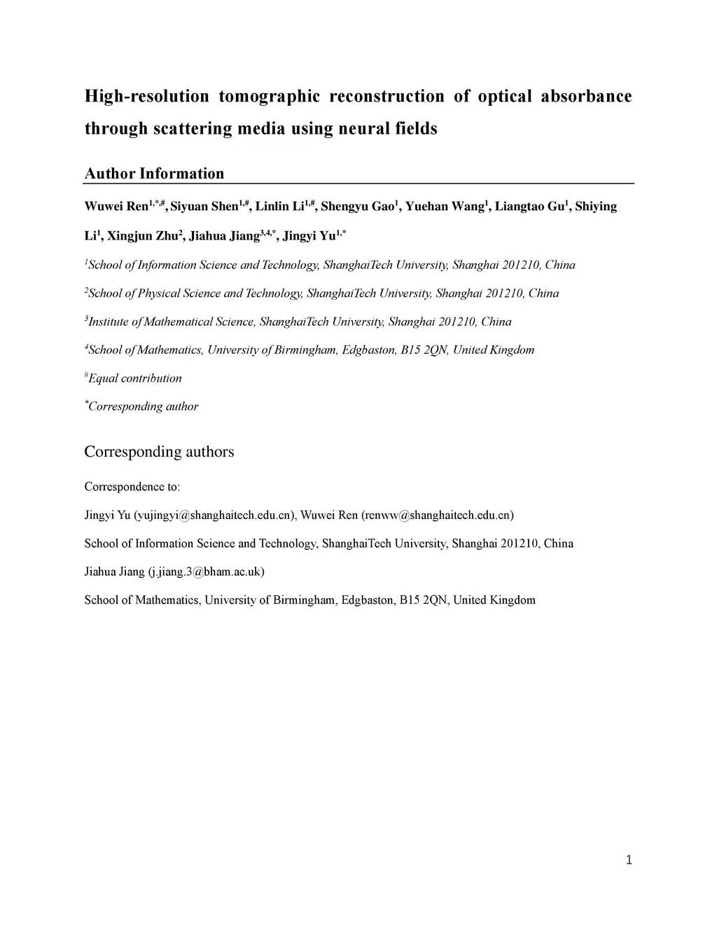 Light scattering imposes a major obstacle for imaging objects seated deeply in turbid media, such as biological tissues and foggy air. Diffuse optical tomography (DOT) tackles scattering by volumetrically recovering the optical absorbance and has shown significance in medical imaging, remote sensing and autonomous driving. A conventional DOT reconstruction paradigm necessitates discretizing the object volume into voxels at a pre-determined resolution for modelling diffuse light propagation and the resulting spatial resolution of the reconstruction is generally limited. We propose NeuDOT, a novel DOT scheme based on neural fields (NF) to continuously encode the optical absorbance within the volume and subsequently bridge the gap between model accuracy and high resolution. Comprehensive experiments demonstrate that NeuDOT achieves submillimetre lateral resolution and resolves complex 3D objects at 14 mm-depth, outperforming the state-of-the-art methods. NeuDOT is a non-invasive, high-resolution and computationally efficient tomographic method, and unlocks further applications of NF involving light scattering.