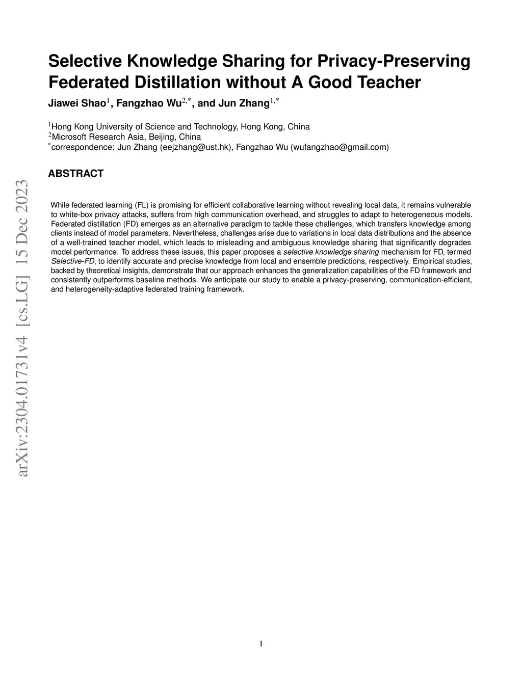 Selective Knowledge Sharing for Privacy-Preserving Federated Distillation without A Good Teacher