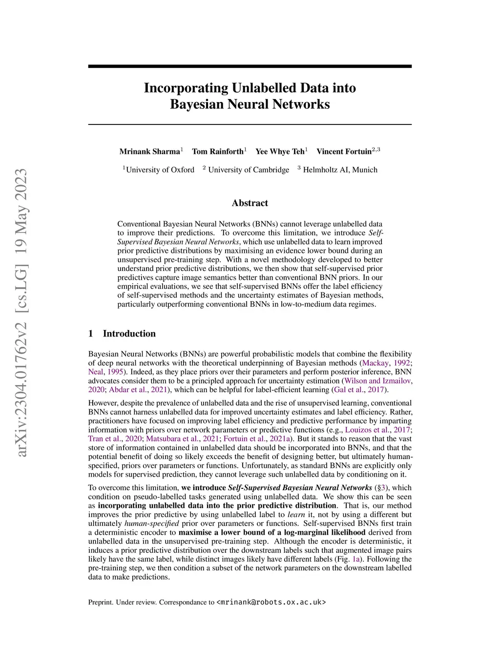Incorporating Unlabelled Data into Bayesian Neural Networks