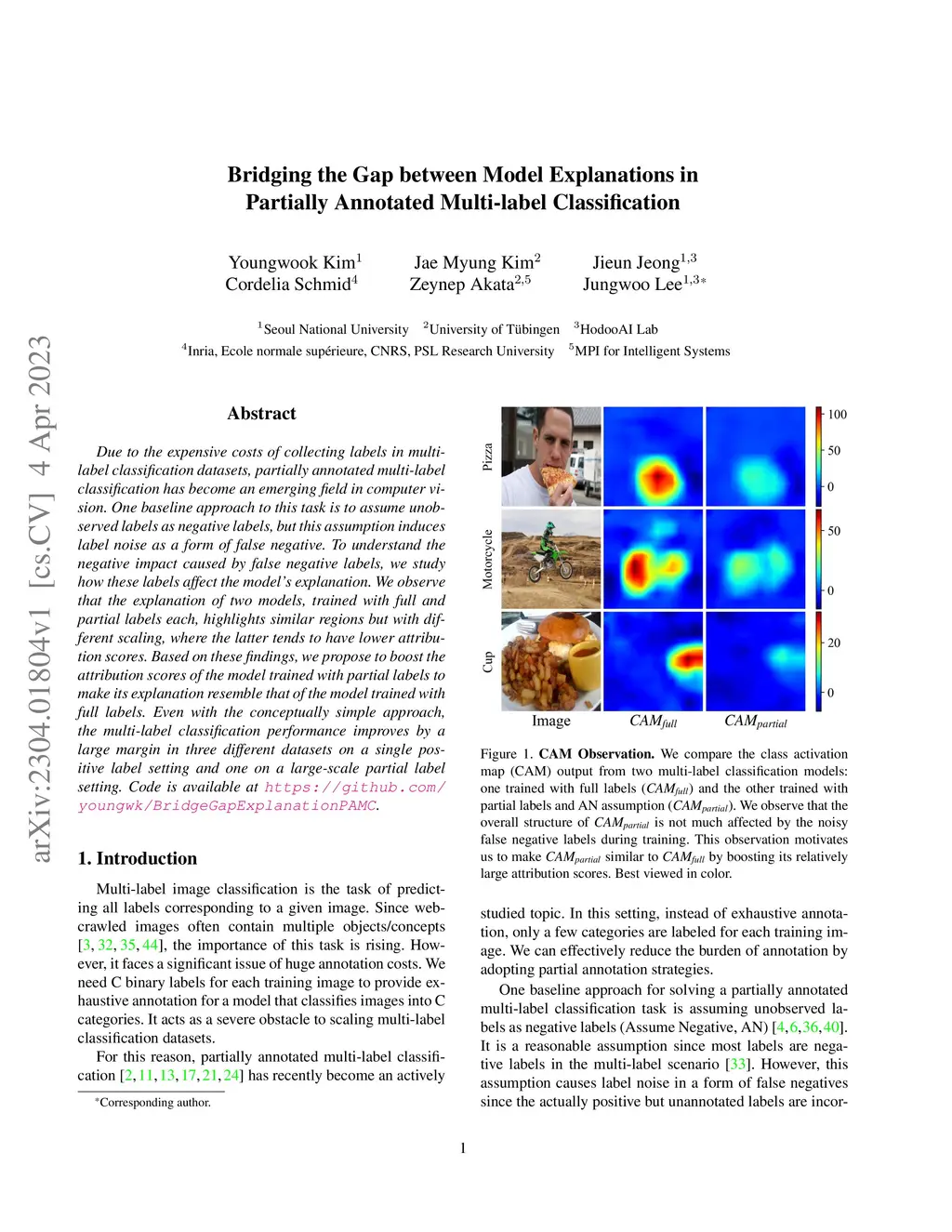 Due to the expensive costs of collecting labels in multi-label classification datasets, partially annotated multi-label classification has become an emerging field in computer vision. One baseline approach to this task is to assume unobserved labels as negative labels, but this assumption induces label noise as a form of false negative. To understand the negative impact caused by false negative labels, we study how these labels affect the model's explanation. We observe that the explanation of two models, trained with full and partial labels each, highlights similar regions but with different scaling, where the latter tends to have lower attribution scores. Based on these findings, we propose to boost the attribution scores of the model trained with partial labels to make its explanation resemble that of the model trained with full labels. Even with the conceptually simple approach, the multi-label classification performance improves by a large margin in three different datasets on a single positive label setting and one on a large-scale partial label setting. Code is available at https://github.com/youngwk/BridgeGapExplanationPAMC.