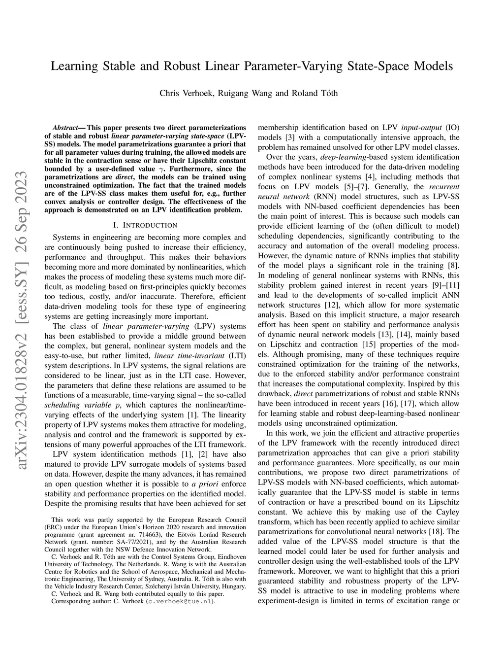 This paper presents two direct parameterizations of stable and robust linear parameter-varying state-space (LPV-SS) models. The model parametrizations guarantee a priori that for all parameter values during training, the allowed models are stable in the contraction sense or have their Lipschitz constant bounded by a user-defined value . Furthermore, since the parametrizations are direct, the models can be trained using unconstrained optimization. The fact that the trained models are of the LPV-SS class makes them useful for, e.g., further convex analysis or controller design. The effectiveness of the approach is demonstrated on an LPV identification problem.