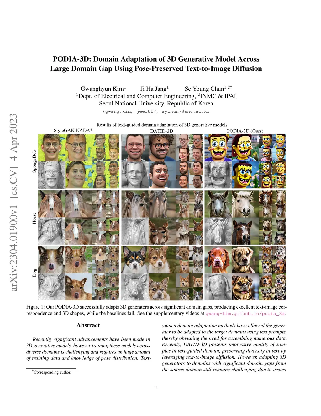 PODIA-3D: Domain Adaptation of 3D Generative Model Across Large Domain