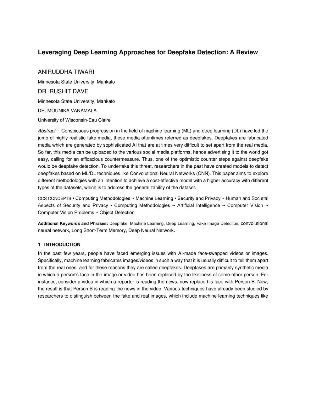 Leveraging Deep Learning Approaches for Deepfake Detection: A Review