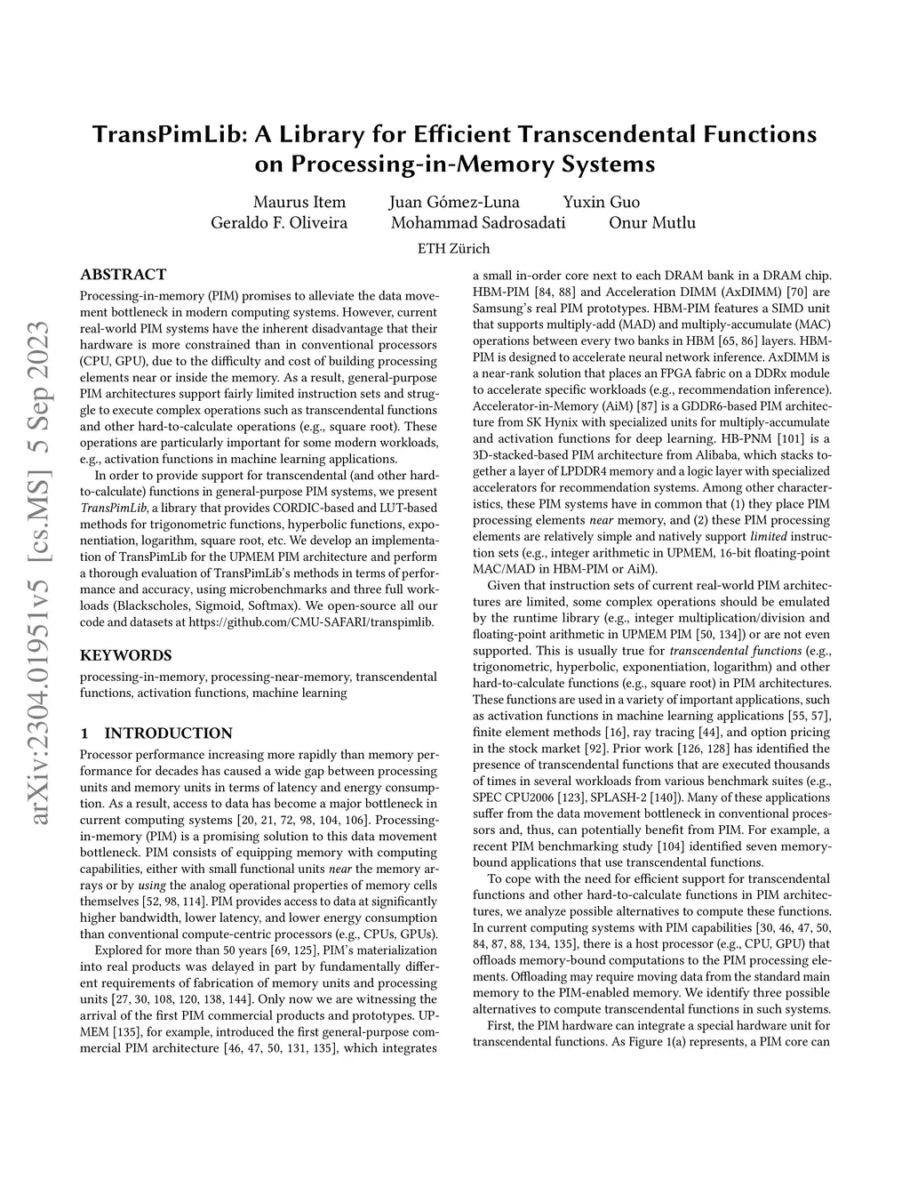 TransPimLib: A Library for Efficient Transcendental Functions on