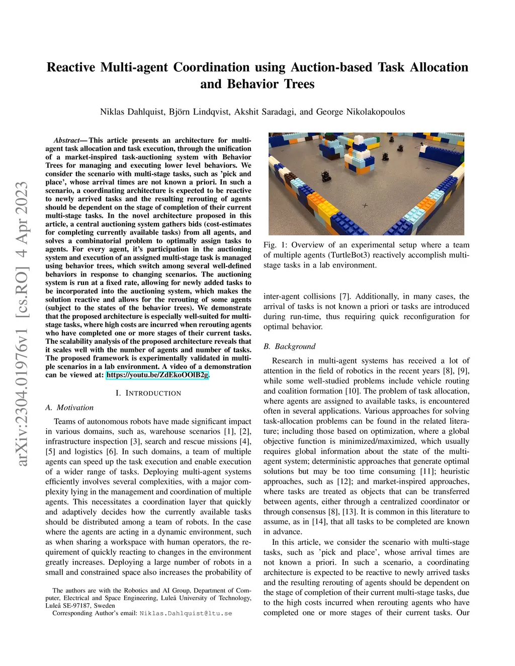 Reactive Multi-agent Coordination using Auction-based Task Allocation