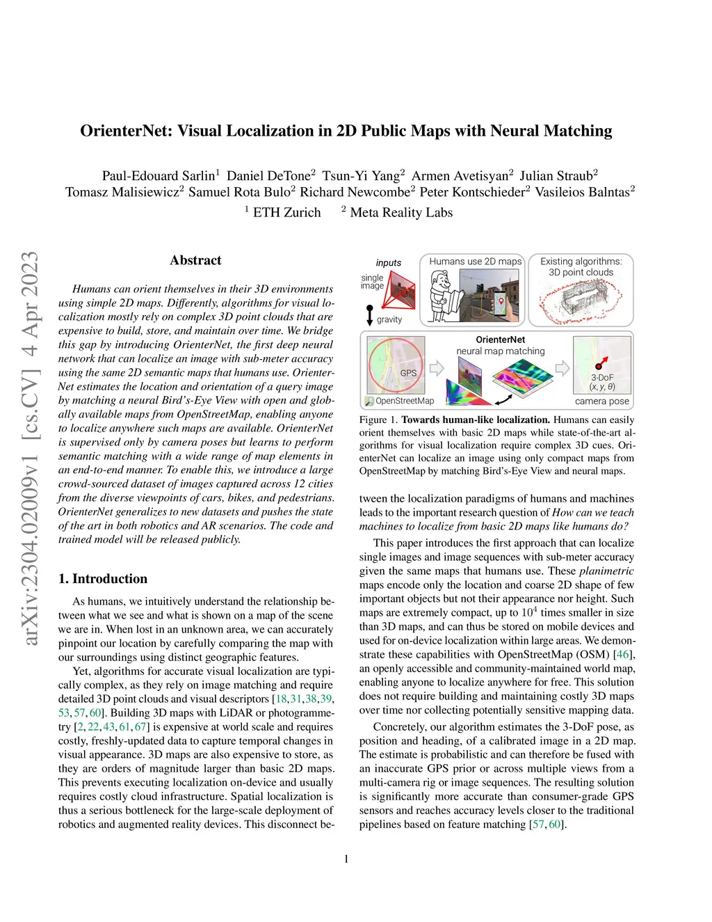 OrienterNet: Visual Localization in 2D Public Maps with Neural Matching