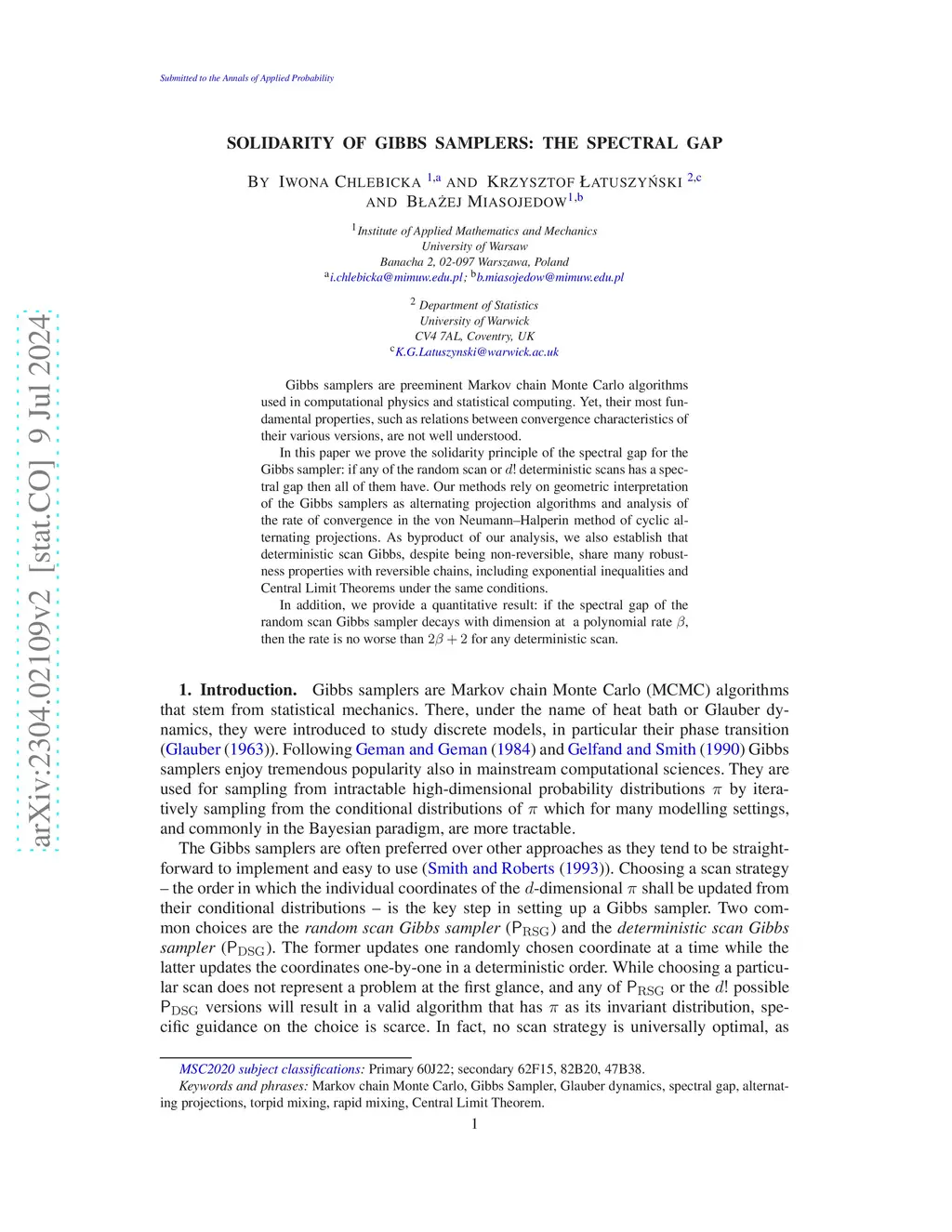 Gibbs samplers are preeminent Markov chain Monte Carlo algorithms used in computational physics and statistical computing. Yet, their most fundamental properties, such as relations between convergence characteristics of their various versions, are not well understood. In this paper we prove the solidarity of their spectral gaps: if any of the random scan or deterministic scans has a~spectral gap then all of them have. Our methods rely on geometric interpretation of the Gibbs samplers as alternating projection algorithms and analysis of the rate of convergence in the von Neumann--Halperin method of cyclic alternating projections. In addition, we provide a quantitative result: if the spectral gap of the random scan Gibbs sampler scales polynomially with dimension, so does the spectral gap of any of the deterministic scans.