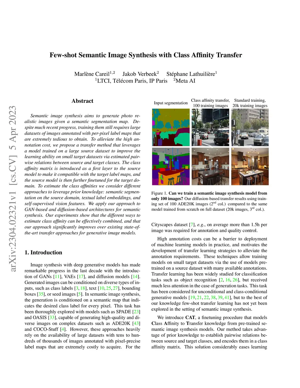 Few-shot Semantic Image Synthesis with Class Affinity Transfer