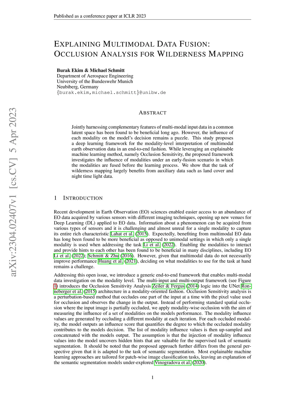 Explaining Multimodal Data Fusion: Occlusion Analysis for Wilderness