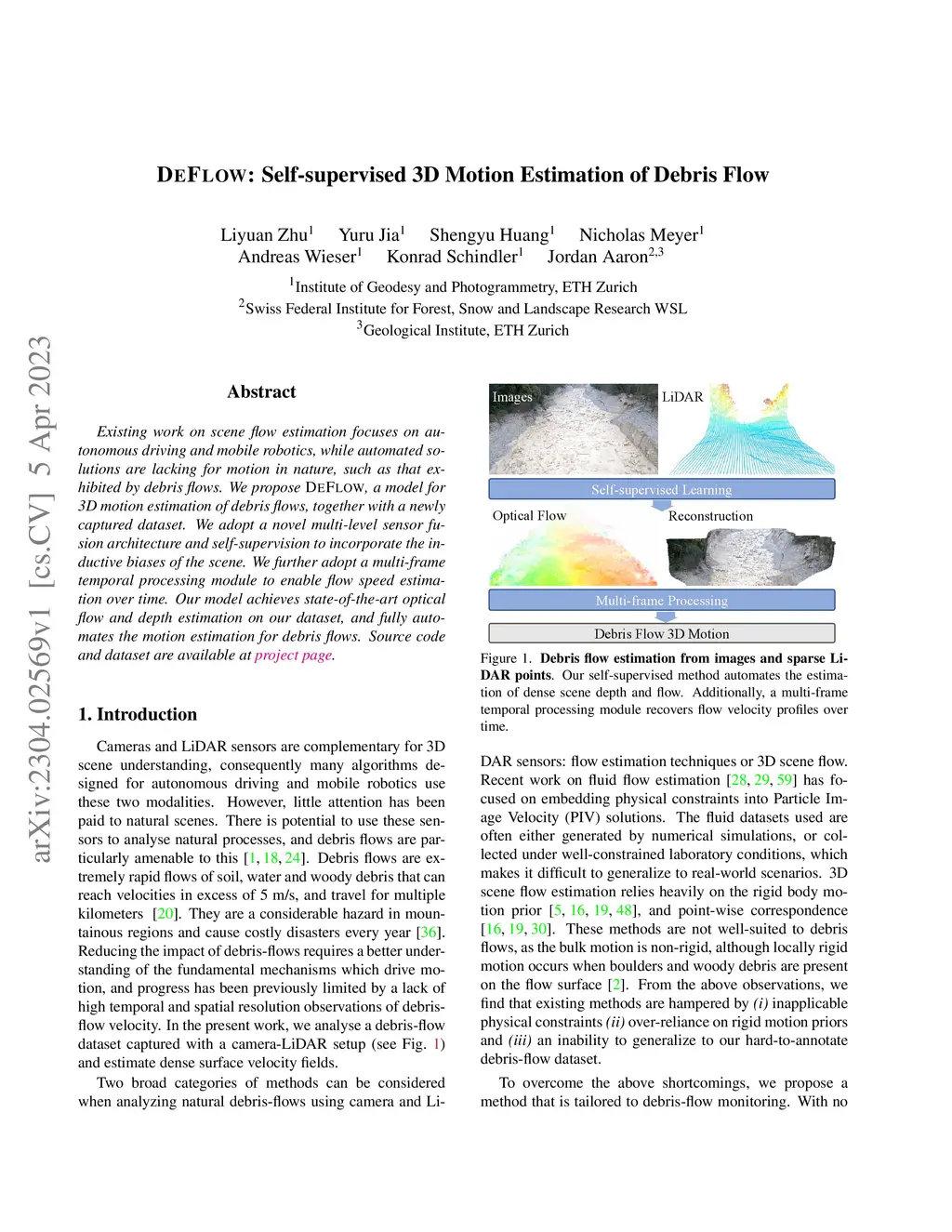 DEFLOW: Self-supervised 3D Motion Estimation of Debris Flow