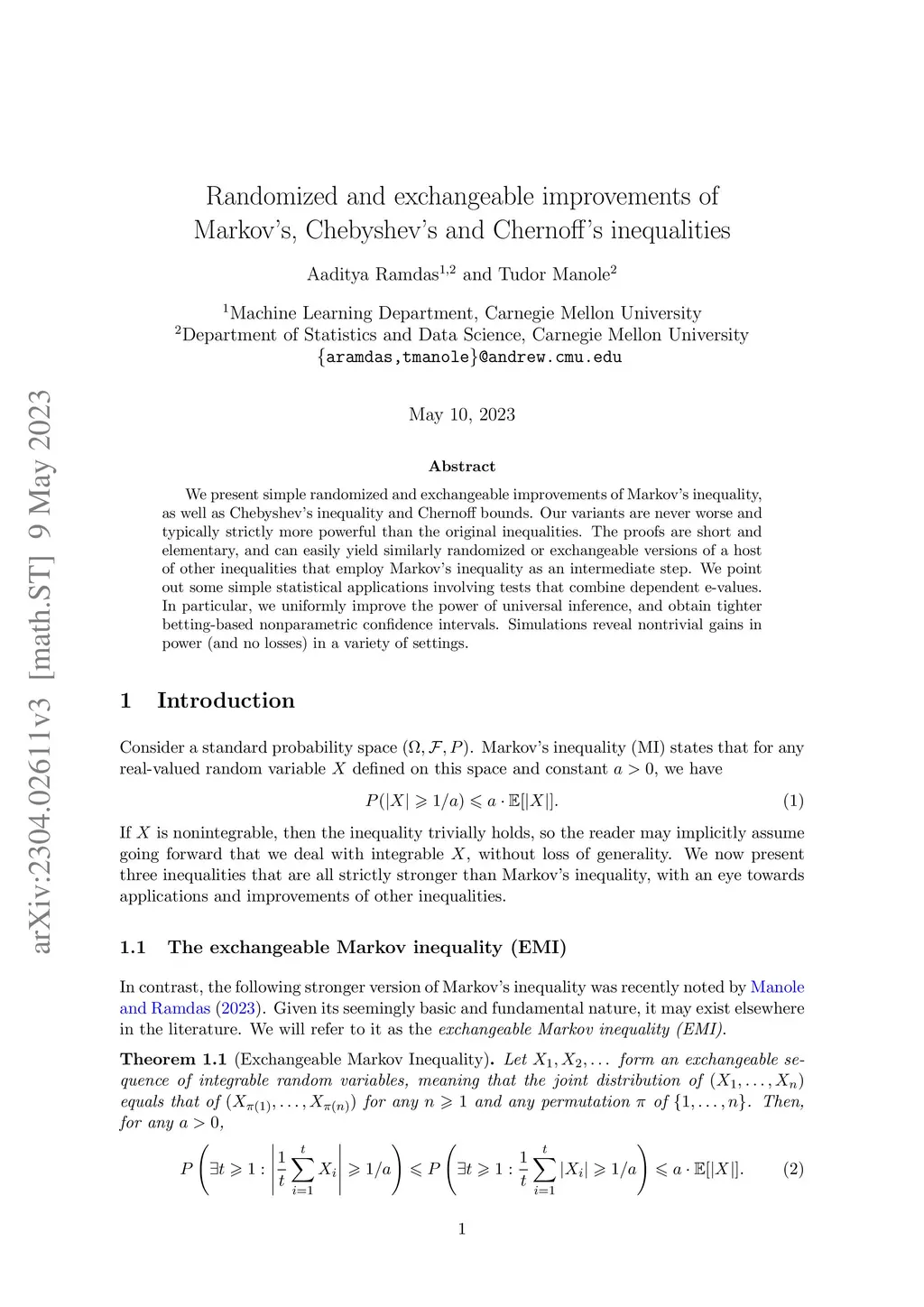 We present simple randomized and exchangeable improvements of Markov's inequality, as well as Chebyshev's inequality and Chernoff bounds. Our variants are never worse and typically strictly more powerful than the original inequalities. The proofs are short and elementary, and can easily yield similarly randomized or exchangeable versions of a host of other inequalities that employ Markov's inequality as an intermediate step. We point out some simple statistical applications involving tests that combine dependent e-values. In particular, we uniformly improve the power of universal inference, and obtain tighter betting-based nonparametric confidence intervals. Simulations reveal nontrivial gains in power (and no losses) in a variety of settings.