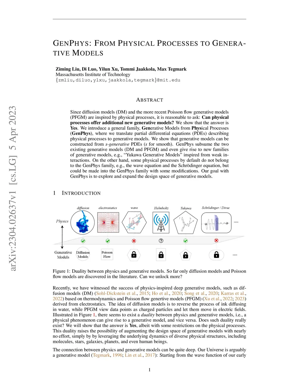 Since diffusion models (DM) and the more recent Poisson flow generative models (PFGM) are inspired by physical processes, it is reasonable to ask: Can physical processes offer additional new generative models? We show that the answer is yes. We introduce a general family, Generative Models from Physical Processes (GenPhys), where we translate partial differential equations (PDEs) describing physical processes to generative models. We show that generative models can be constructed from s-generative PDEs (s for smooth). GenPhys subsume the two existing generative models (DM and PFGM) and even give rise to new families of generative models, e.g., "Yukawa Generative Models" inspired from weak interactions. On the other hand, some physical processes by default do not belong to the GenPhys family, e.g., the wave equation and the Schr\"{o}dinger equation, but could be made into the GenPhys family with some modifications. Our goal with GenPhys is to explore and expand the design space of generative models.