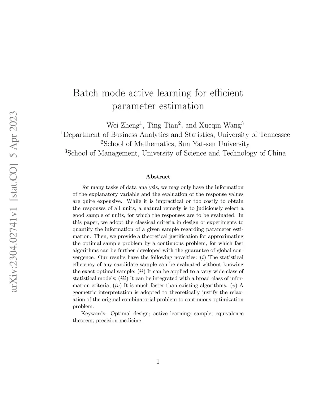 Batch mode active learning for efficient parameter estimation
