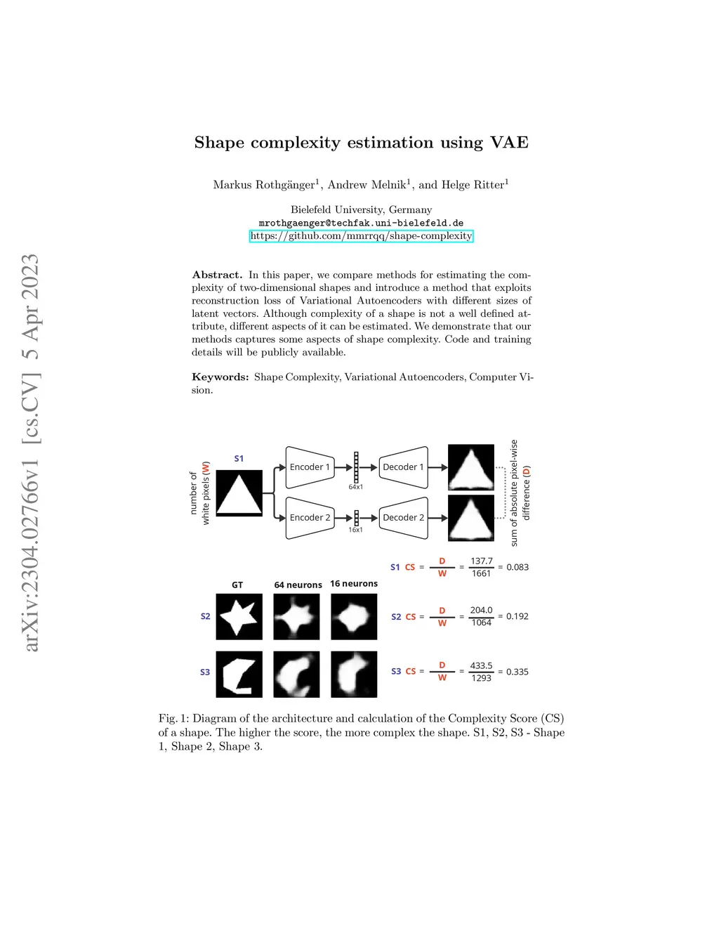 In this paper, we compare methods for estimating the complexity of two-dimensional shapes and introduce a method that exploits reconstruction loss of Variational Autoencoders with different sizes of latent vectors. Although complexity of a shape is not a well defined attribute, different aspects of it can be estimated. We demonstrate that our methods captures some aspects of shape complexity. Code and training details will be publicly available.