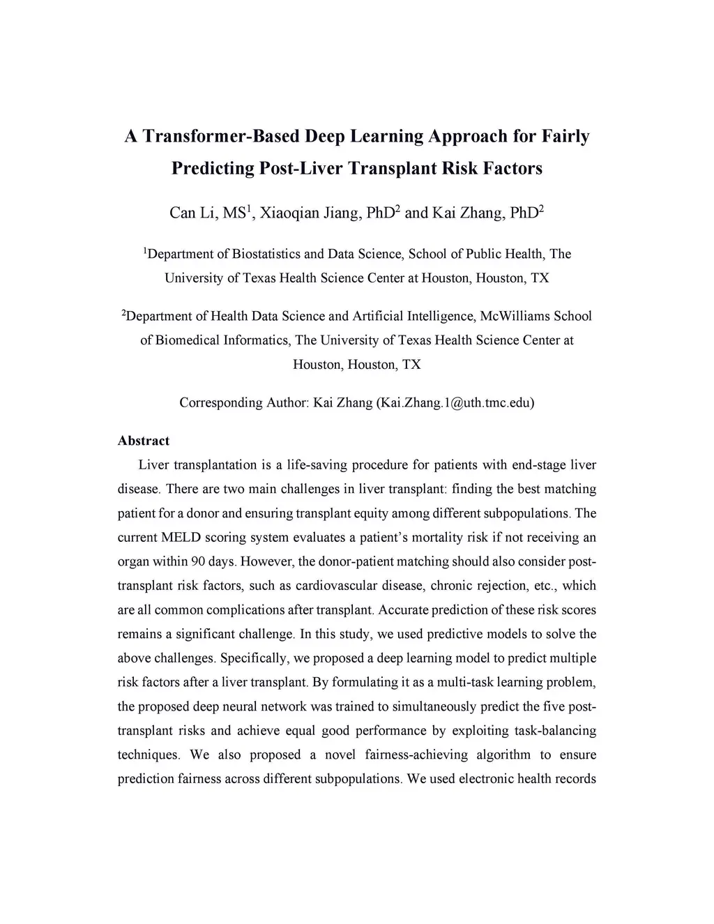 Liver transplantation is a life-saving procedure for patients with end-stage liver disease. There are two main challenges in liver transplant: finding the best matching patient for a donor and ensuring transplant equity among different subpopulations. The current MELD scoring system evaluates a patient's mortality risk if not receiving an organ within 90 days. However, the donor-patient matching should also consider post-transplant risk factors, such as cardiovascular disease, chronic rejection, etc., which are all common complications after transplant. Accurate prediction of these risk scores remains a significant challenge. In this study, we used predictive models to solve the above challenges. Specifically, we proposed a deep-learning model to predict multiple risk factors after a liver transplant. By formulating it as a multi-task learning problem, the proposed deep neural network was trained to simultaneously predict the five post-transplant risks and achieve equal good performance by exploiting task-balancing techniques. We also proposed a novel fairness-achieving algorithm to ensure prediction fairness across different subpopulations. We used electronic health records of 160,360 liver transplant patients, including demographic information, clinical variables, and laboratory values, collected from the liver transplant records of the United States from 1987 to 2018. The model's performance was evaluated using various performance metrics such as AUROC and AUPRC. Our experiment results highlighted the success of our multitask model in achieving task balance while maintaining accuracy. The model significantly reduced the task discrepancy by 39%. Further application of the fairness-achieving algorithm substantially reduced fairness disparity among all sensitive attributes (gender, age group, and race/ethnicity) in each risk factor.