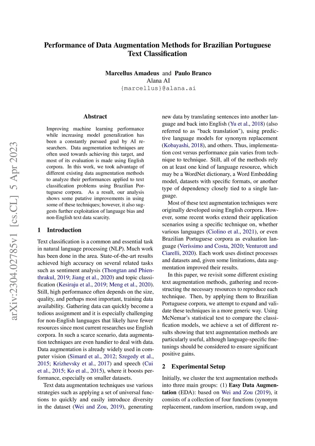 Performance of Data Augmentation Methods for Brazilian Portuguese Text