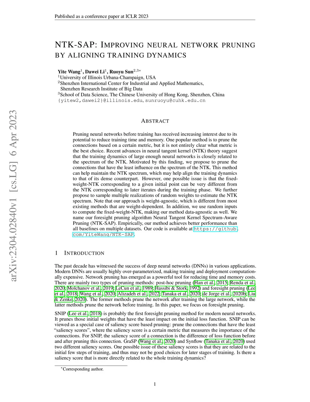 NTK-SAP: Improving neural network pruning by aligning training dynamics