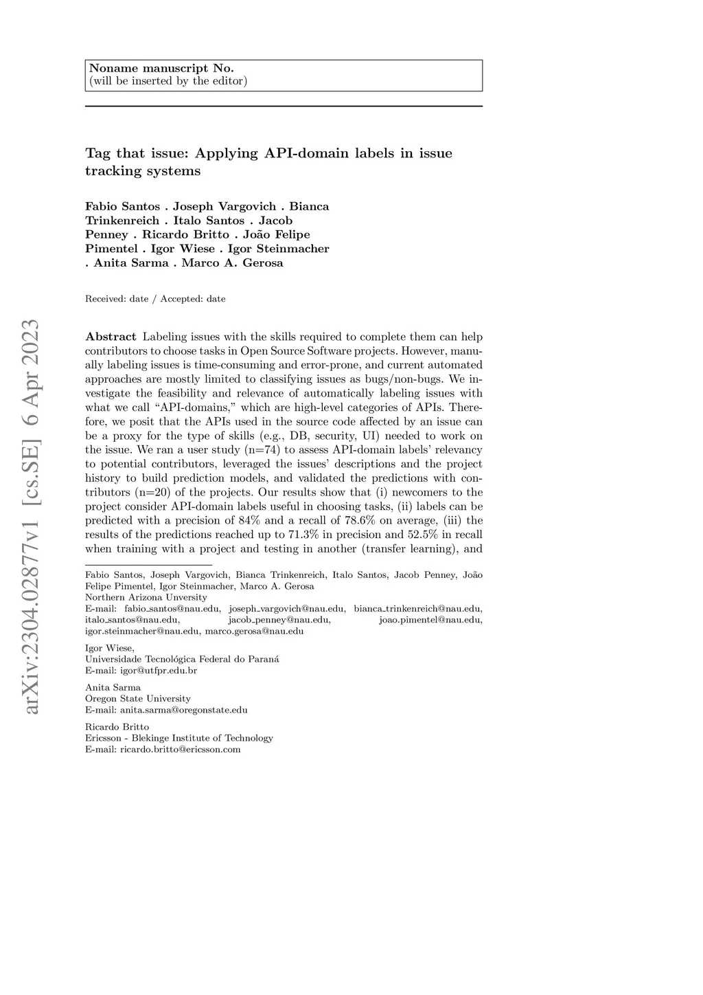 Tag that issue: Applying API-domain labels in issue tracking systems