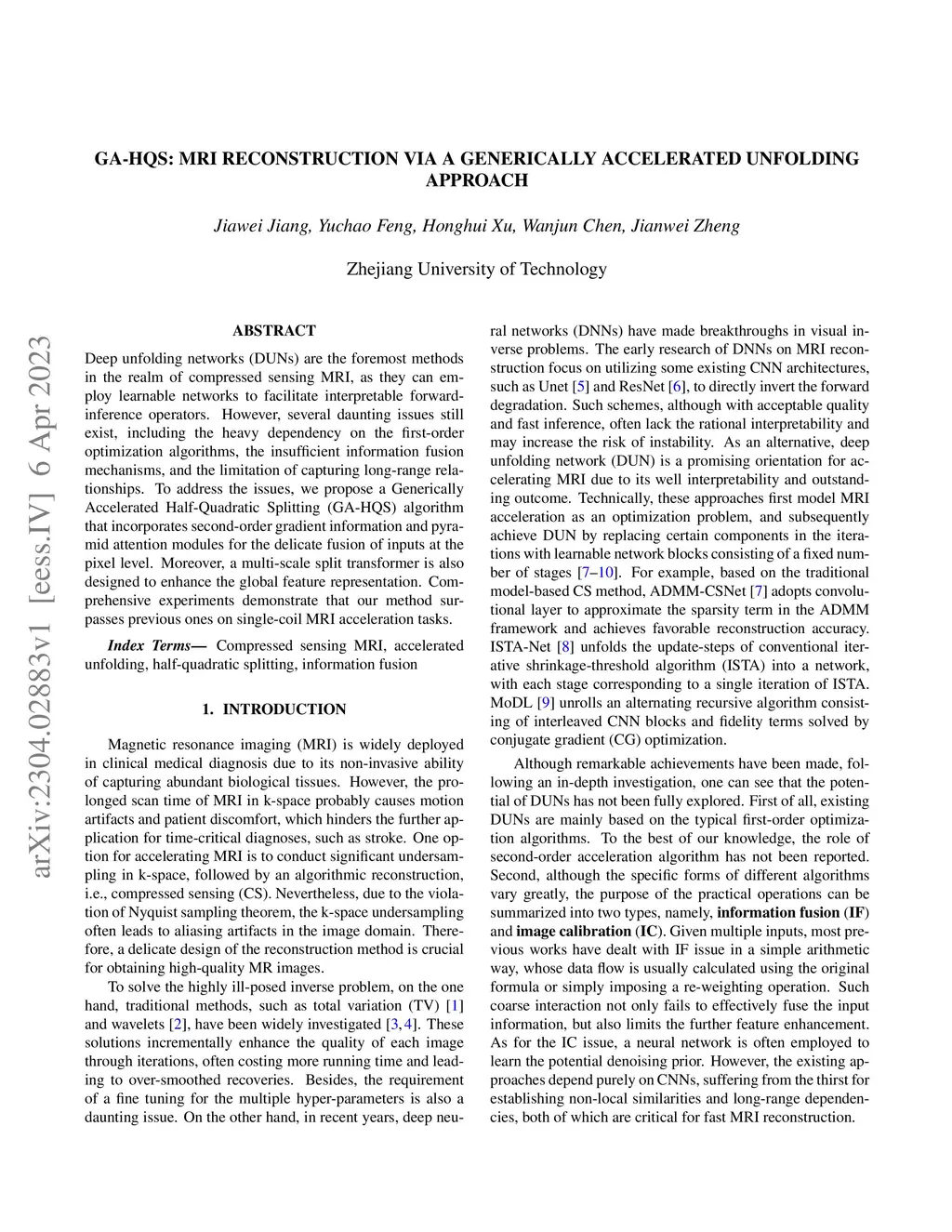 Deep unfolding networks (DUNs) are the foremost methods in the realm of compressed sensing MRI, as they can employ learnable networks to facilitate interpretable forward-inference operators. However, several daunting issues still exist, including the heavy dependency on the first-order optimization algorithms, the insufficient information fusion mechanisms, and the limitation of capturing long-range relationships. To address the issues, we propose a Generically Accelerated Half-Quadratic Splitting (GA-HQS) algorithm that incorporates second-order gradient information and pyramid attention modules for the delicate fusion of inputs at the pixel level. Moreover, a multi-scale split transformer is also designed to enhance the global feature representation. Comprehensive experiments demonstrate that our method surpasses previous ones on single-coil MRI acceleration tasks.