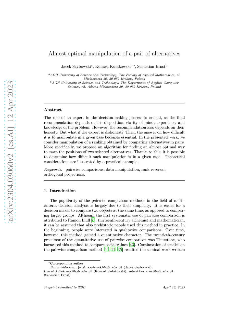The role of an expert in the decision-making process is crucial, as the final recommendation depends on his disposition, clarity of mind, experience, and knowledge of the problem. However, the recommendation also depends on their honesty. But what if the expert is dishonest? Then, the answer on how difficult it is to manipulate in a given case becomes essential. In the presented work, we consider manipulation of a ranking obtained by comparing alternatives in pairs. More specifically, we propose an algorithm for finding an almost optimal way to swap the positions of two selected alternatives. Thanks to this, it is possible to determine how difficult such manipulation is in a given case. Theoretical considerations are illustrated by a practical example.