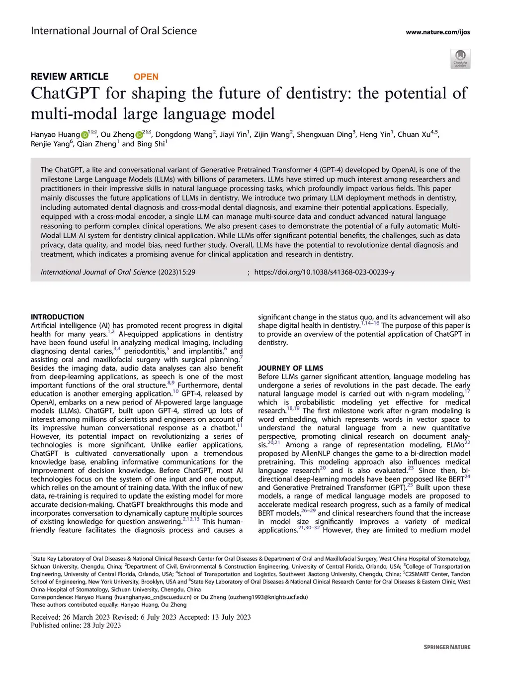 ChatGPT for Shaping the Future of Dentistry: The Potential of