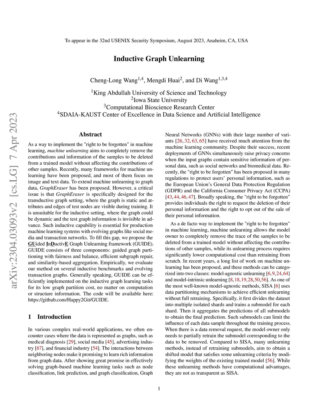 As a way to implement the "right to be forgotten" in machine learning, \textit{machine unlearning} aims to completely remove the contributions and information of the samples to be deleted from a trained model without affecting the contributions of other samples. Recently, many frameworks for machine unlearning have been proposed, and most of them focus on image and text data. To extend machine unlearning to graph data, \textit{GraphEraser} has been proposed. However, a critical issue is that \textit{GraphEraser} is specifically designed for the transductive graph setting, where the graph is static and attributes and edges of test nodes are visible during training. It is unsuitable for the inductive setting, where the graph could be dynamic and the test graph information is invisible in advance. Such inductive capability is essential for production machine learning systems with evolving graphs like social media and transaction networks. To fill this gap, we propose the \underline{{\bf G}}\underline{{\bf U}}ided \underline{{\bf I}}n\underline{{\bf D}}uctiv\underline{{\bf E}} Graph Unlearning framework (GUIDE). GUIDE consists of three components: guided graph partitioning with fairness and balance, efficient subgraph repair, and similarity-based aggregation. Empirically, we evaluate our method on several inductive benchmarks and evolving transaction graphs. Generally speaking, GUIDE can be efficiently implemented on the inductive graph learning tasks for its low graph partition cost, no matter on computation or structure information. The code will be available here: https://github.com/Happy2Git/GUIDE.