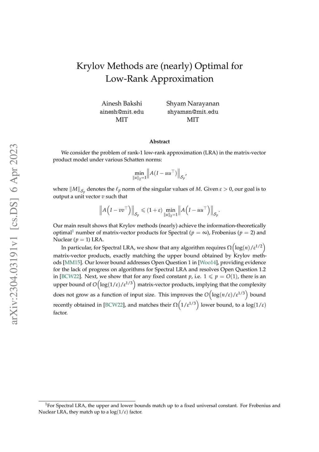 Krylov Methods are (nearly) Optimal for Low-Rank Approximation