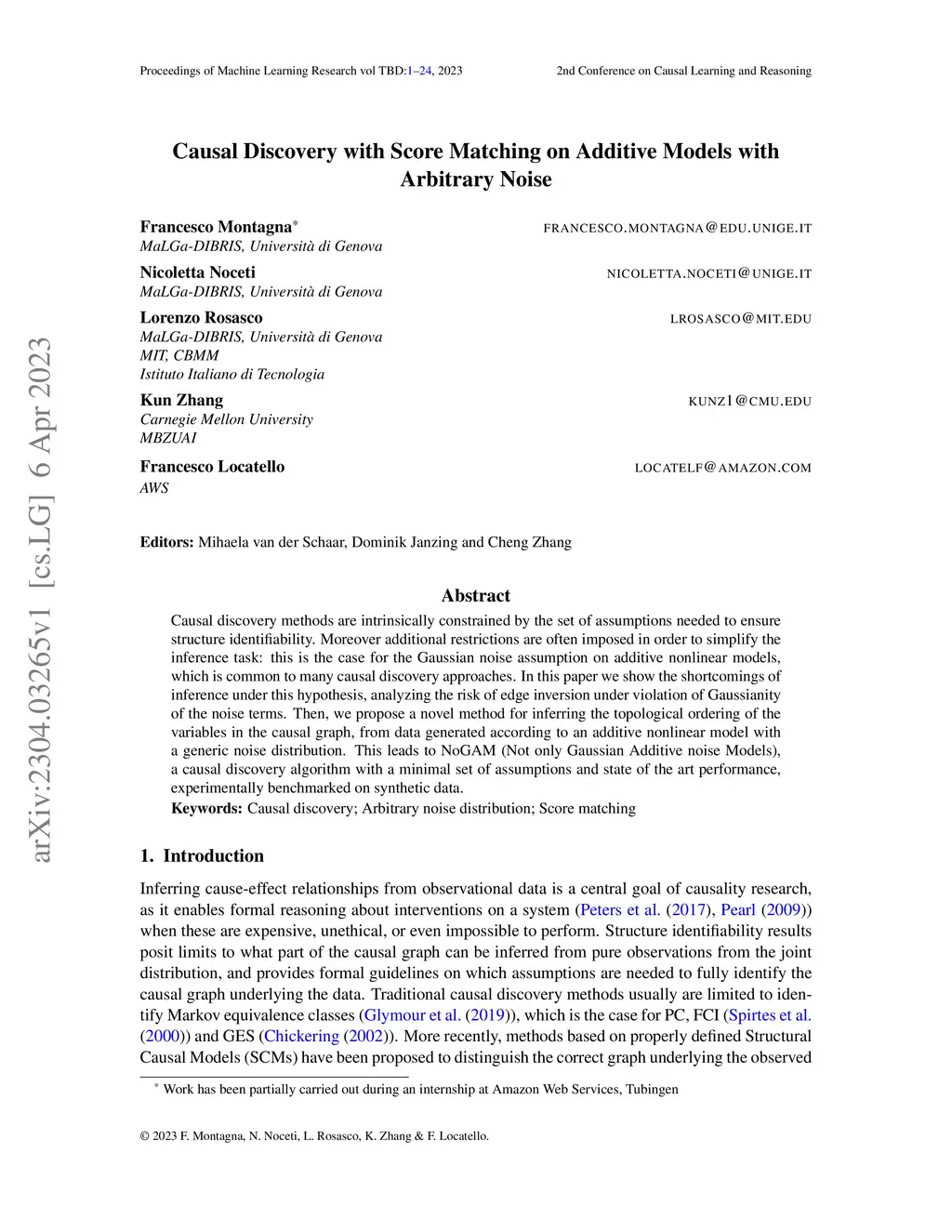Causal Discovery with Score Matching on Additive Models with Arbitrary