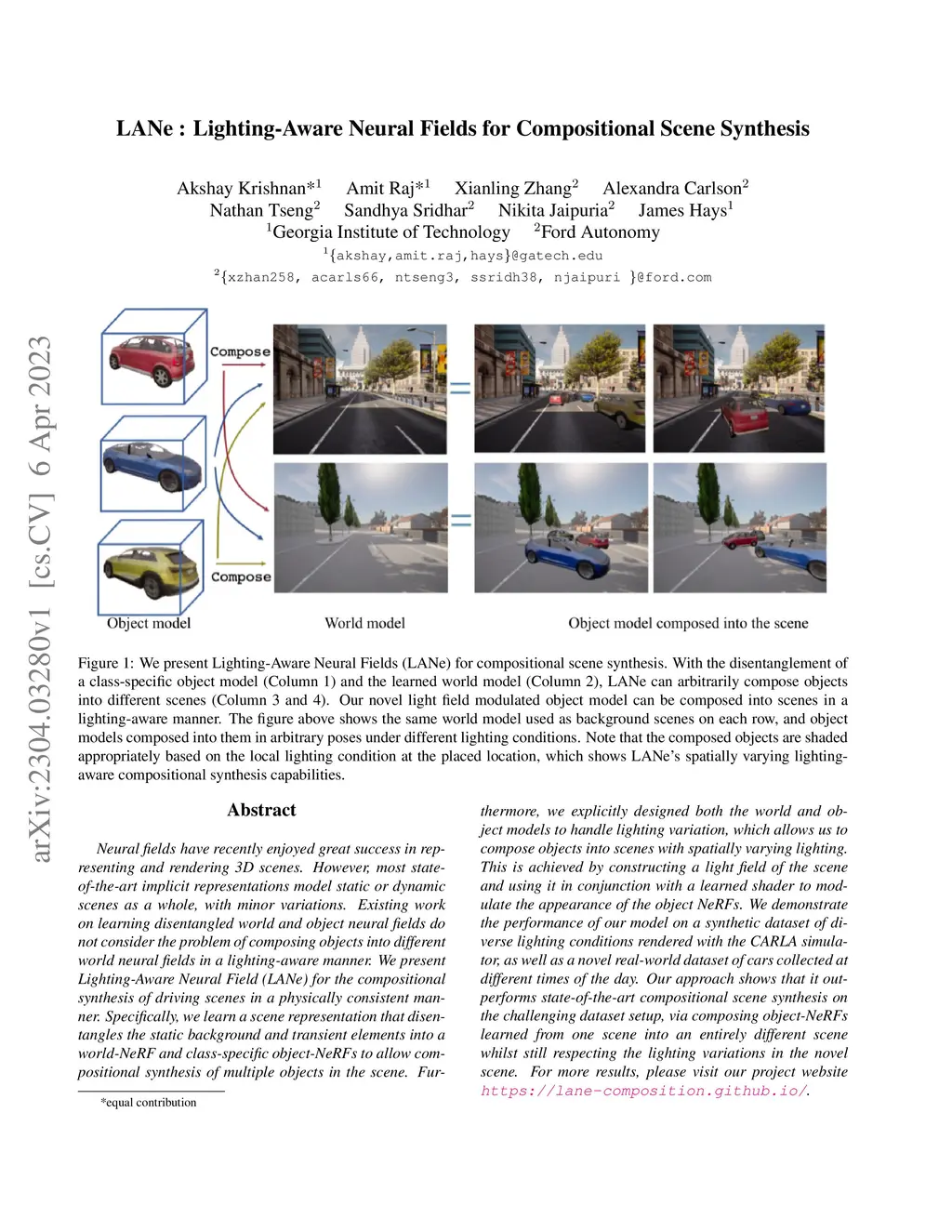 LANe: Lighting-Aware Neural Fields for Compositional Scene Synthesis