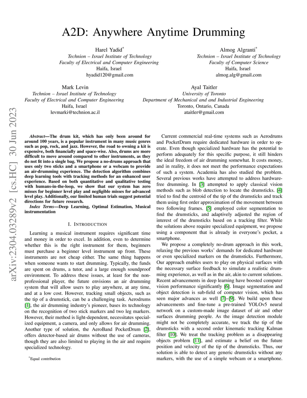 The drum kit, which has only been around for around 100 years, is a popular instrument in many music genres such as pop, rock, and jazz. However, the road to owning a kit is expensive, both financially and space-wise. Also, drums are more difficult to move around compared to other instruments, as they do not fit into a single bag. We propose a no-drums approach that uses only two sticks and a smartphone or a webcam to provide an air-drumming experience. The detection algorithm combines deep learning tools with tracking methods for an enhanced user experience. Based on both quantitative and qualitative testing with humans-in-the-loop, we show that our system has zero misses for beginner level play and negligible misses for advanced level play. Additionally, our limited human trials suggest potential directions for future research.