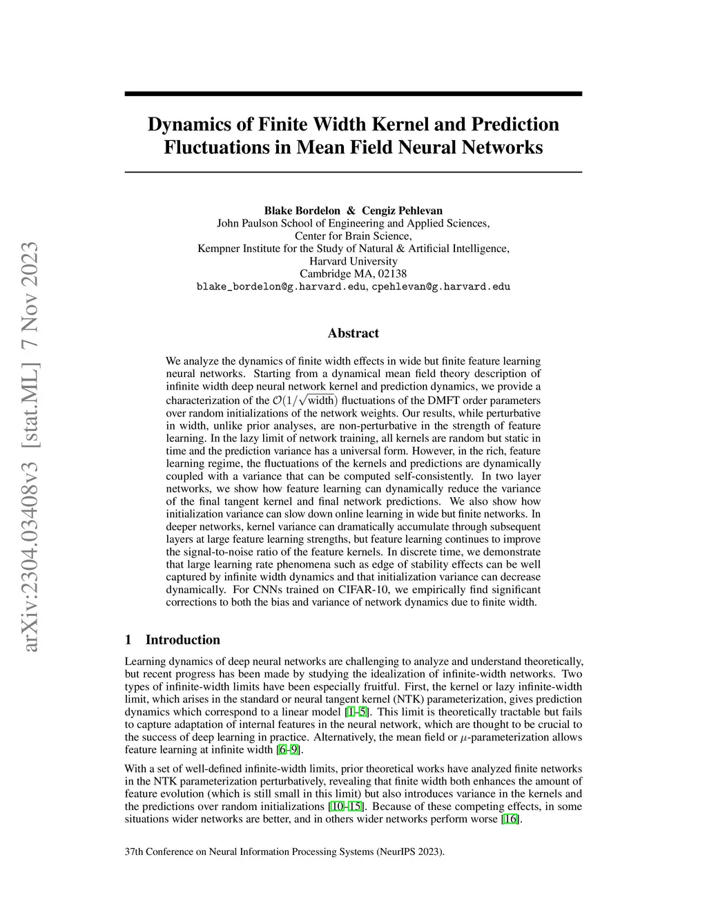 We analyze the dynamics of finite width effects in wide but finite feature learning neural networks. Starting from a dynamical mean field theory description of infinite width deep neural network kernel and prediction dynamics, we provide a characterization of the fluctuations of the DMFT order parameters over random initializations of the network weights. Our results, while perturbative in width, unlike prior analyses, are non-perturbative in the strength of feature learning. In the lazy limit of network training, all kernels are random but static in time and the prediction variance has a universal form. However, in the rich, feature learning regime, the fluctuations of the kernels and predictions are dynamically coupled with a variance that can be computed self-consistently. In two layer networks, we show how feature learning can dynamically reduce the variance of the final tangent kernel and final network predictions. We also show how initialization variance can slow down online learning in wide but finite networks. In deeper networks, kernel variance can dramatically accumulate through subsequent layers at large feature learning strengths, but feature learning continues to improve the signal-to-noise ratio of the feature kernels. In discrete time, we demonstrate that large learning rate phenomena such as edge of stability effects can be well captured by infinite width dynamics and that initialization variance can decrease dynamically. For CNNs trained on CIFAR-10, we empirically find significant corrections to both the bias and variance of network dynamics due to finite width.