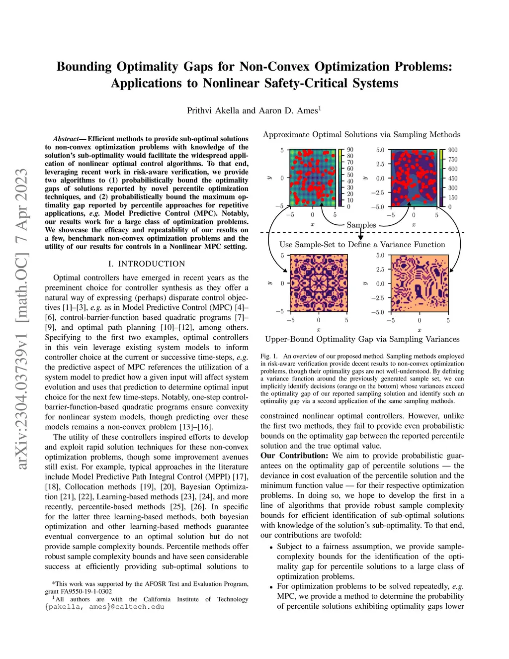 Efficient methods to provide sub-optimal solutions to non-convex optimization problems with knowledge of the solution's sub-optimality would facilitate the widespread application of nonlinear optimal control algorithms. To that end, leveraging recent work in risk-aware verification, we provide two algorithms to (1) probabilistically bound the optimality gaps of solutions reported by novel percentile optimization techniques, and (2) probabilistically bound the maximum optimality gap reported by percentile approaches for repetitive applications, e.g. Model Predictive Control (MPC). Notably, our results work for a large class of optimization problems. We showcase the efficacy and repeatability of our results on a few, benchmark non-convex optimization problems and the utility of our results for controls in a Nonlinear MPC setting.